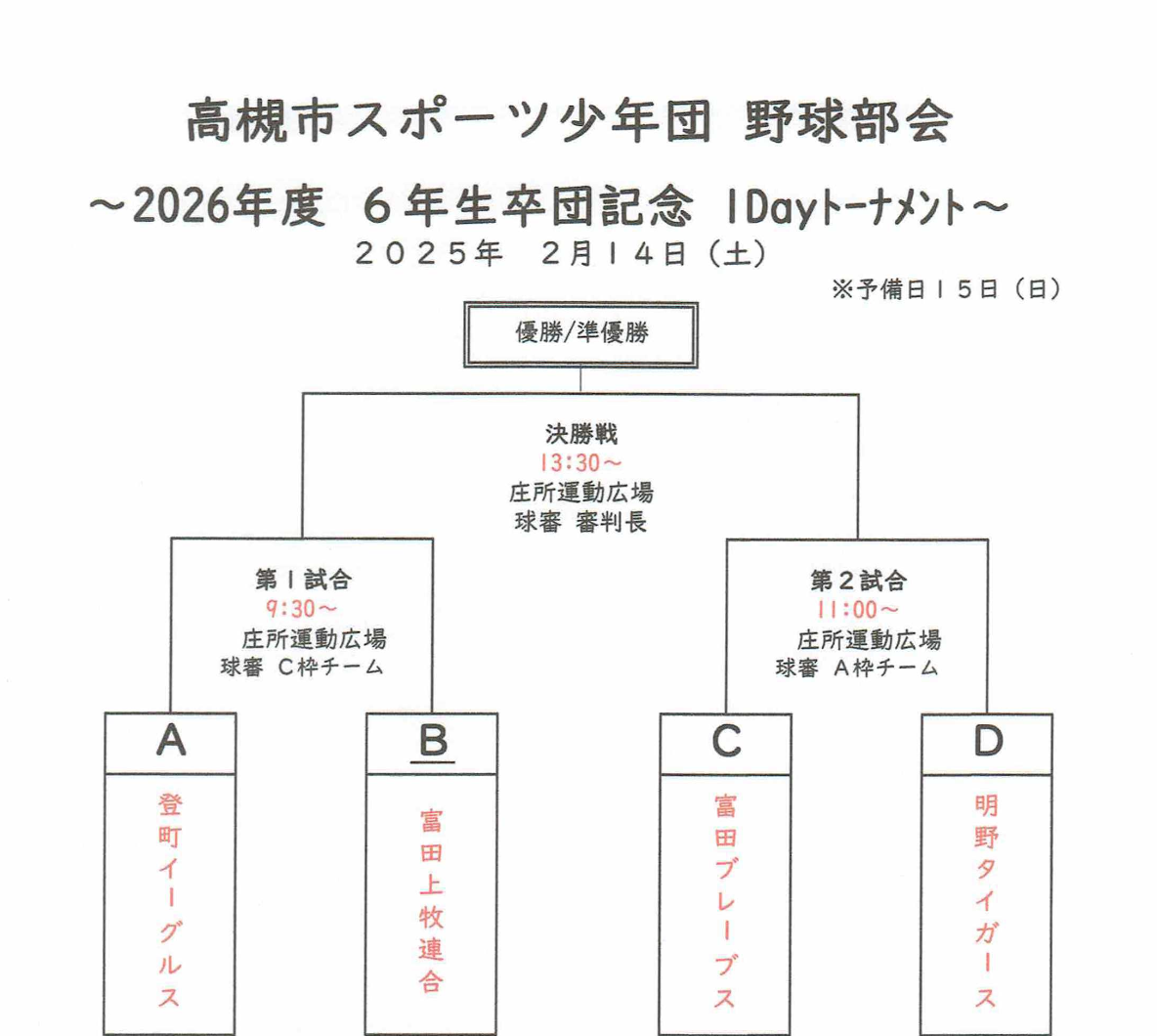 前年度優勝・準優勝チームは優勝旗、カップを試合当日に持参すること
